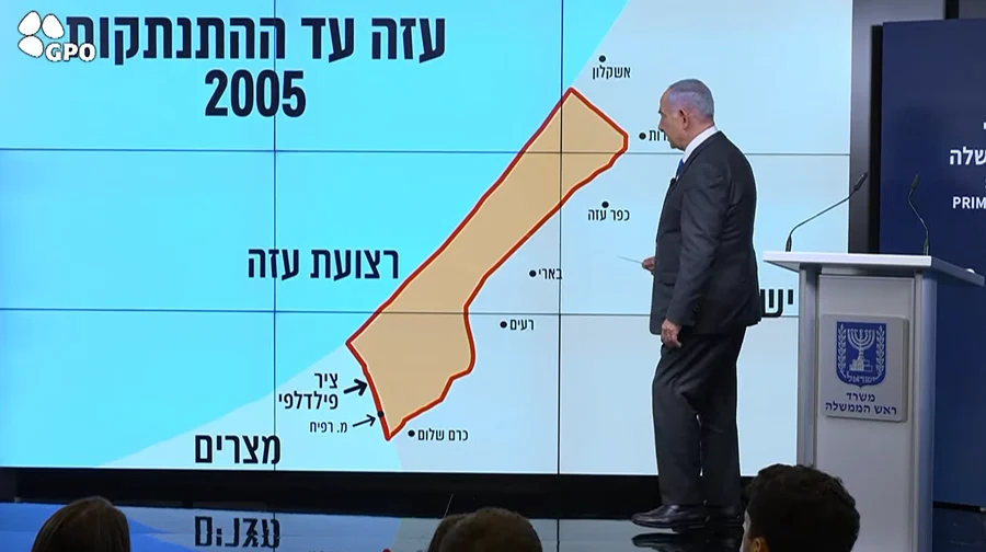 נתניהו פירט את חשיבותו האסטרטגית של ציר פילדלפי, אזור החיץ בין מצרים לרצועת עזה, ואמר: "ציר הרשע צריך את ציר פילדלפי. אם נצא משם, לא נוכל לחזור." הוא הדגיש כי הדרך להשגת מטרות המלחמה, כולל השבת החטופים, עוברת דרך שליטה על הציר האסטרטגי הזה.