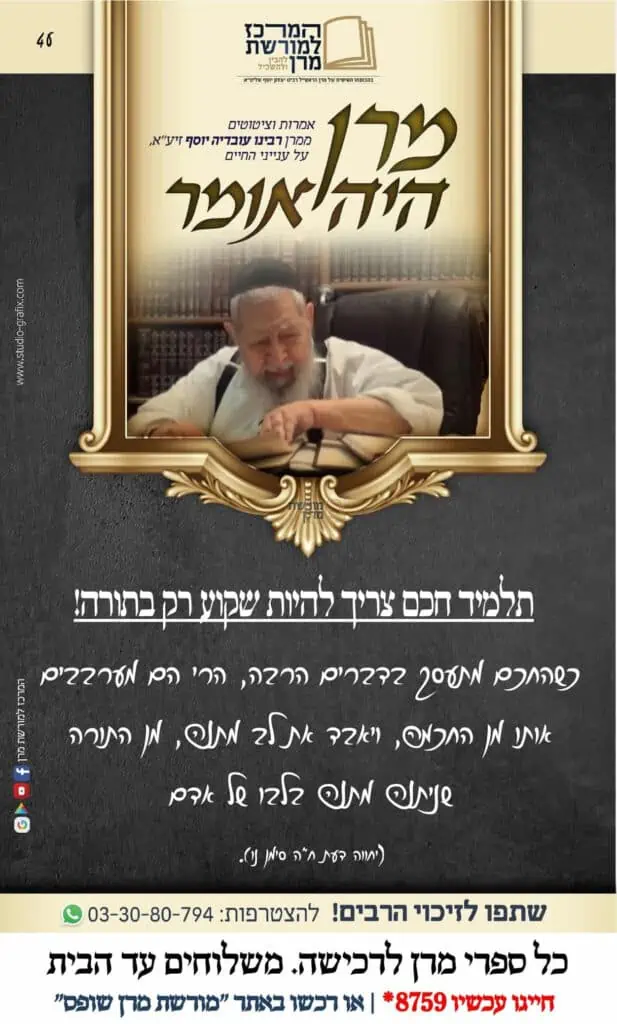 אמרה וציטוט ממרן רבינו עובדיה יוסף זיעא