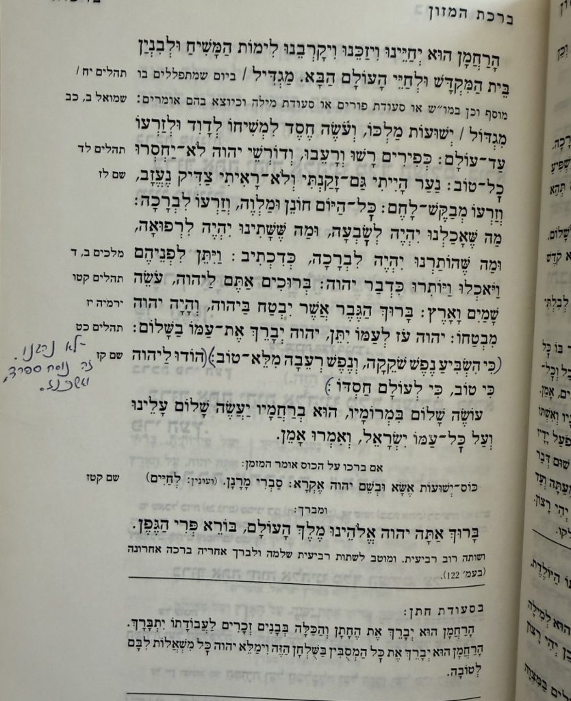 על המילים "ושרים במנגינת התקווה" (בהקשר לשירת "שיר המעלות" בברכת המזון ביום העצמאות) רשם בקצרה: